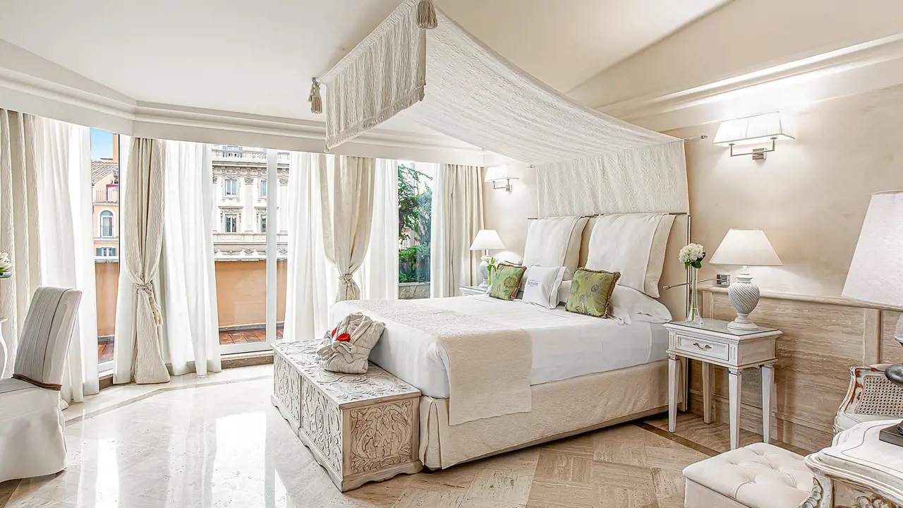 Here, the city’s noise fades away, replaced by the soft hush of delicate curtains swaying in the breeze and the warm light gently caressing the walls. Each room has its own soul: some overlook the rooftops of Rome, others discreetly face Piazza Barberini, and some open onto the building’s inner courtyard, a hidden, serene corner where the city seems to vanish, leaving only peace and quiet.