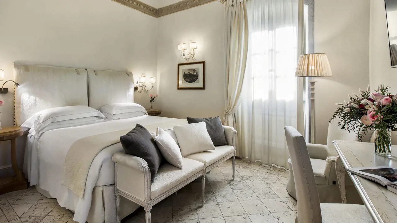Le antiche celle dei frati, camere luminose e spaziose, dove il design raffinato incontra la calda atmosfera del monastero. Soffitti a travi bianche e pareti decorate per un soggiorno all’insegna della tradizione toscana con quel tocco di comfort in più che rende l’esperienza ancora più speciale.